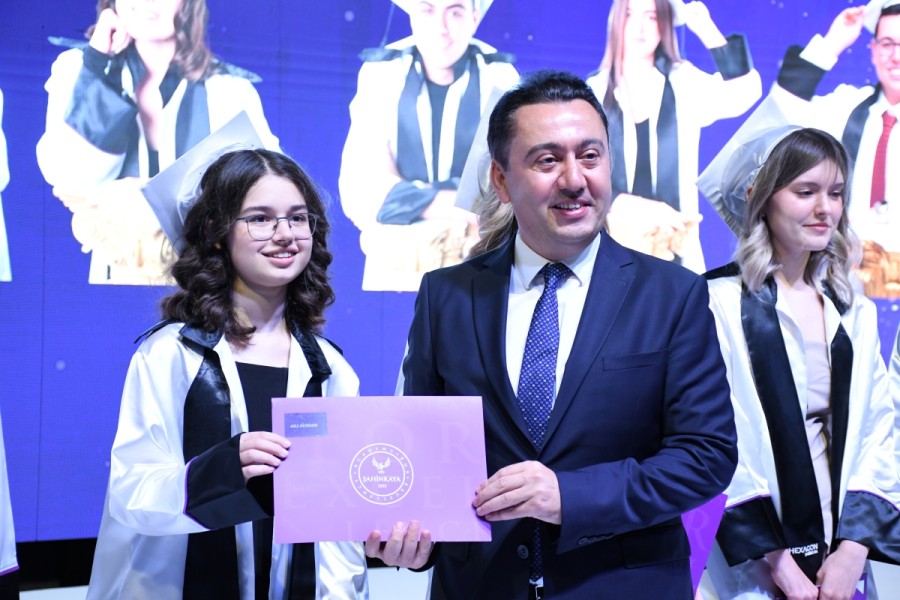 Şahinkaya Eğitim Kurumları'nda bir diğer mezuniyet coşkusu da 8.sınıflarda yaşandı. Merkez Kampüs'te düzenlenen törende öğrenciler, ortaokul yıllarına veda etmenin gururunu ve lise hayatına başlamanın heyecanını bir arada yaşadılar. Şahinkaya Eğitim Kurumları Yönetim Kurulu Başkan Vekili Dilay Şahinkaya, törende yaptığı konuşmada gençlere hitap ederek onların akademik başarıları kadar sosyal ve kültürel gelişimlerine de vurgu yaptı. Öğrencilere hayallerinin peşinden gitmeleri, özgüvenle ve kararlılıkla ilerlemeleri yönünde telkinlerde bulundu.