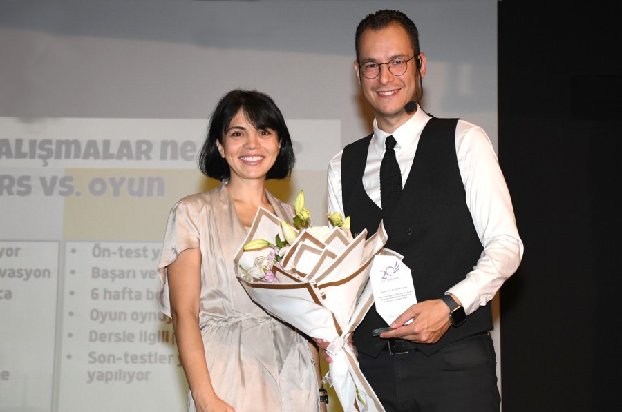Şahinkaya Eğitim Kurumları öğretmenlerinin katılım sağladığı seminer programının sonunda Şahinkaya Eğitim Kurumları Yönetim Kurulu Başkan Vekili Dilay Şahinkaya, Doç. Dr. Yavuz Samur'a plaket takdim ederek teşekkür etti.