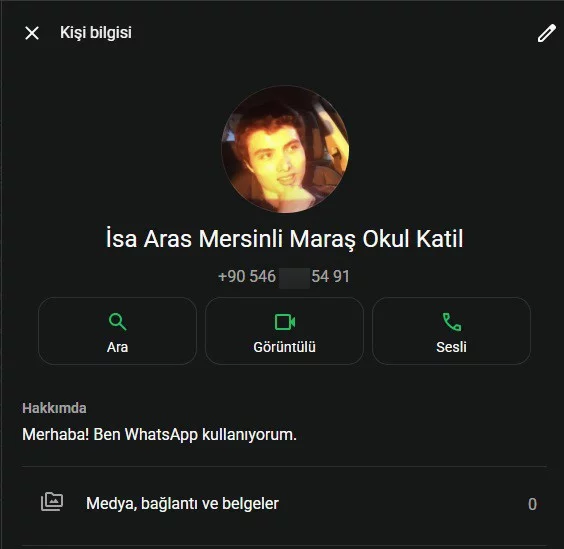 Kahramanmaraş'taki okul saldırısında 1 öğretmen ve 8 öğrencinin hayatını kaybettiği, 17 öğrencinin yaralandığı olayla ilgili soruşturma sürerken, saldırıyı gerçekleştiren 14 yaşındaki öğrencinin WhatsApp profil fotoğrafında Elliot Rodger görseli kullandığı tespit edildi.