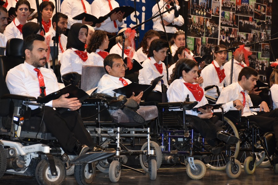 Dünya Engelliler Günü münasebetiyle Bursa Büyükşehir Belediyesi'nin katkılarıyla Bursa Kent Konseyi Engelliler Meclisi tarafından konser verildi. Atatürk Kongre Kültür Merkezi'ndeki programa, Büyükşehir Belediyesi Başkanvekili Fethi Yıldız'ın yanı sıra Bursa Milletvekili Ahmet Kılıç, Vali Yardımcısı Sultan Doğru, Bursa Kent Konseyi Başkanı Şevket Orhan, Engelliler Meclisi Başkanı İbrahim Sönmez ve vatandaşlar katıldı. İstiklal Marşı'nın Busmek ve Osmangazi Halk Eğitim Merkezi işaret dili kursu öğrencileri eşliğinde okunduğu gecede, ilk olarak Kalbin Ritmi Grubu sahne aldı. Kullandıkları müzik aletleriyle yeteneklerini sergileyen özel bireyler, dinleyenlerden büyük alkış aldı. Ardından Şef Kemal Kamalı önderliğinde engelli bireylerden oluşan Türk Halk Müziği korosu sahne aldı. Birbirinden önemli eserleri Orkestra Şube Müdürlüğü sanatçıları eşliğinde solo ve koro halinde seslendiren engelli bireyler, dinleyenlerden tam not aldı. 'Çanakkale içinde', 'İzmir'in dağlarında çiçekler açar', 'Meşeli dağlar meşeli' gibi türküleri de salonu dolduranlarla birlikte söyleyen Engelliler Meclisi üyeleri, gecenin sonunda ayakta alkışlandı.