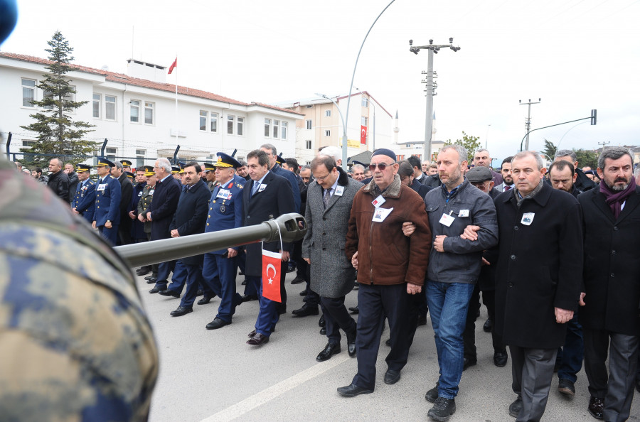 Başbakan Yardımcısı Hakan Çavuşoğlu, Bursalı şehit yüzbaşıyı babasıyla birlikte son yolculuğuna uğurladı.