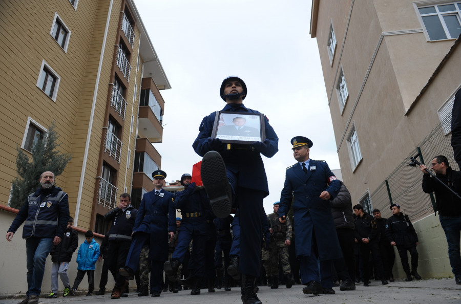 Bursa'nın Yenişehir ilçesindeki baba ocağına getirilen şehit Yüzbaşı Yunus Bal'ın Türk bayrağına sarılı tabutu, ardından Yusuf Ateş Anadolu İmam Hatip Lisesi'nin bahçesine götürüldü.