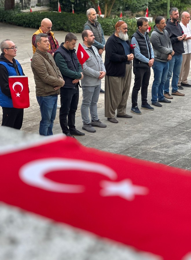 Şehitlik Türk bayrakları ile donatılırken, duygu dolu anlar da yaşandı.