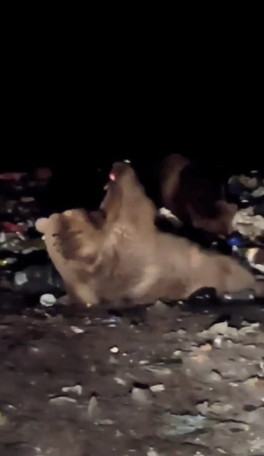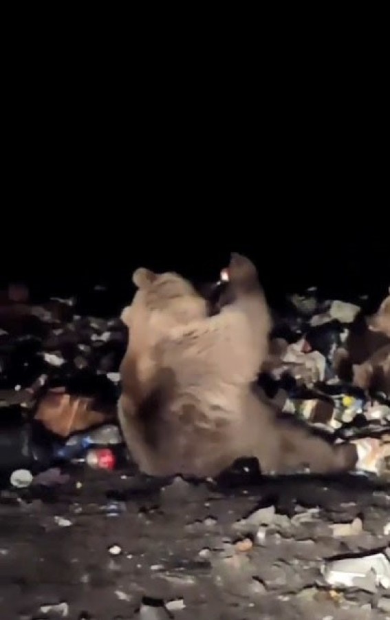 Çöplükte bulduğu gazlı içeceği başına dikerek içen bir boz ayı görüntülendi.
