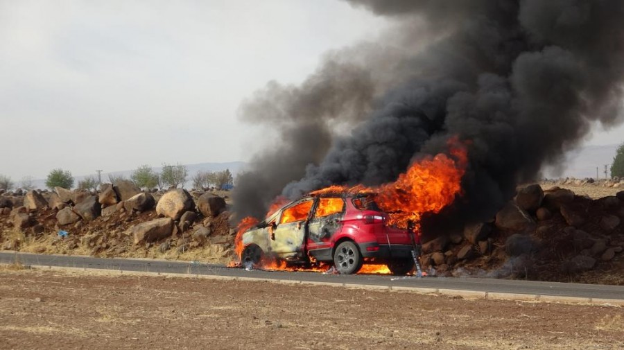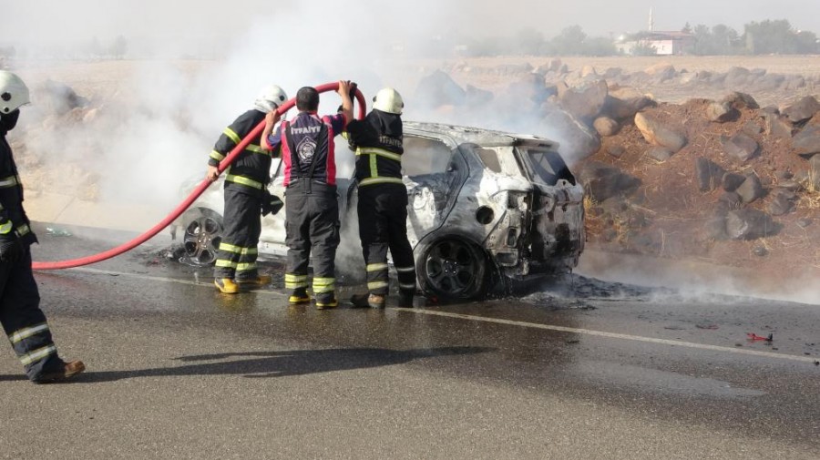 Diyarbakır'da bir otomobil seyir halindeyken alev aldı, sürücü son anda kurtuldu. İtfaiyenin geç gelmesi aracı kül etti.
