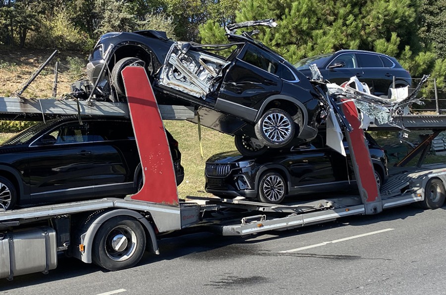 Bakırköy Sahil yolunda TOGG taşıyan tır, Ataköy Marmaray Köprüsüne vurdu. Tırın üzerinde bulunan 3 tane araç hasar alırken, trafik tek şeritten sağlandı.