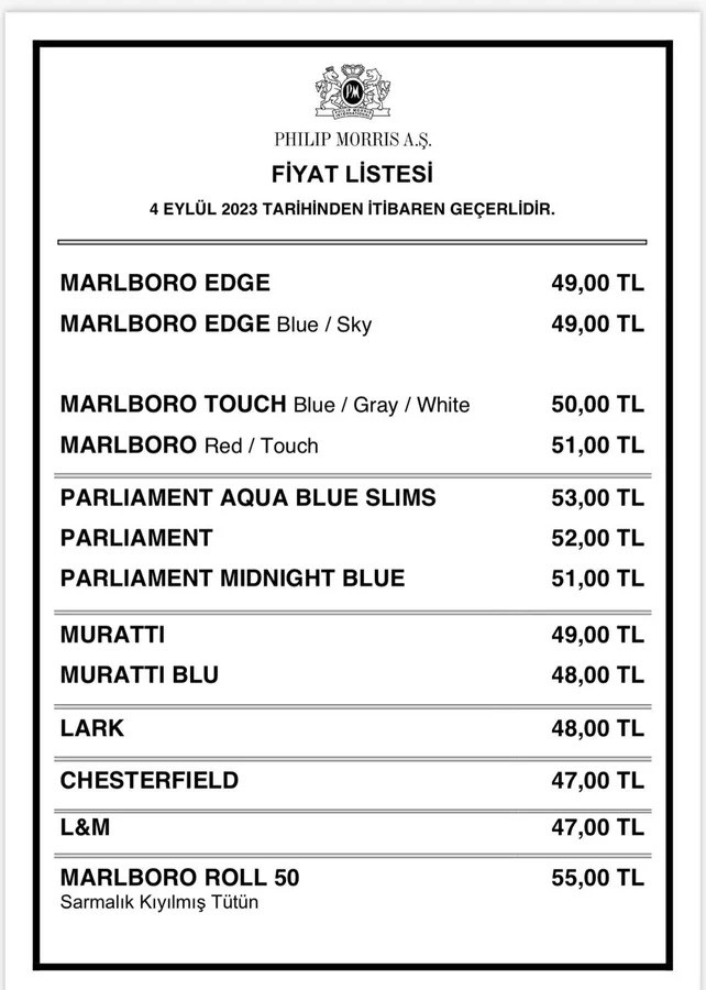 Philip Morris grubuna 5 lira zam geldi. En yüksek fiyattaki sigarası ise 53 liraya yükseldi.