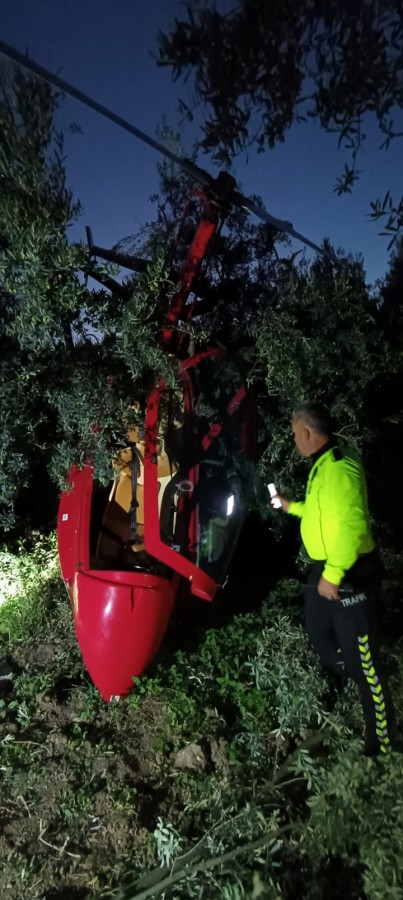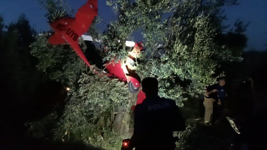 Yaşanan arıza nedeniyle pilot Erkan Hoç yanındaki yolcu Gökhan Molla ile hava taşıtını zeytin ağaçlarının üzerine indirmek için harekete geçti.