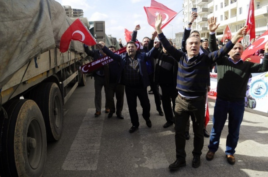 Vatandaşların yoğun sevgi gösterisi altında askeri konvoy 5 kilometrelik yolu 1 saatte kat edebildi.