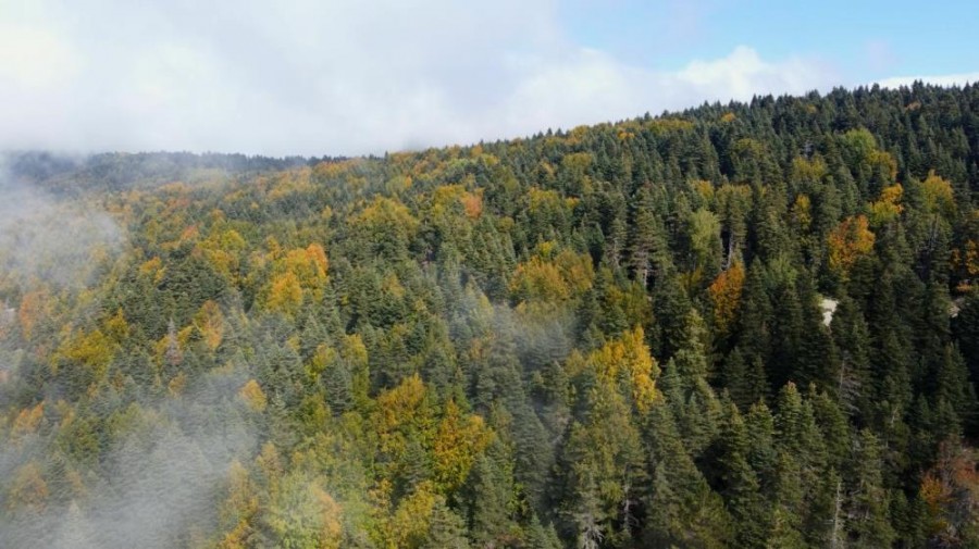 Türkiye'nin önemli kış merkezlerinden biri olan Uludağ, hazan güzelliğiyle ziyaretçilerini büyülüyor. Yeşil, sarı ve kahverengi tonlarının hakim olduğu Uludağ'daki sisli güzellik drone ile havadan görüntülendi.