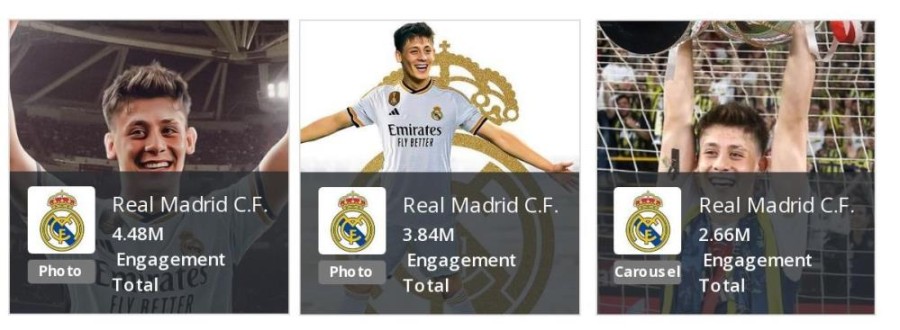 Real Madrid, Fenerbahçe'den kadrosuna kattığı Arda Güler'i için sosyal medya hesaplarını aktif bir şekilde kullandı. Transferin duyurulmasının ardından kulübün resmi sosyal medya hesaplarından yaptığı paylaşımlar rekor etkileşim ve takipçi kazanımı ile neticelendi. Teleskop App tarafından yapılan sosyal medya ölçümlemelerinde, Real Madrid'in tüm dünyaya Arda transferini duyurduğu sosyal medya hesapları 1 milyona yakın takipçi kazanımı, yaklaşık 500 milyon görüntülenmeyle rekor kırdığı rapor edildi.