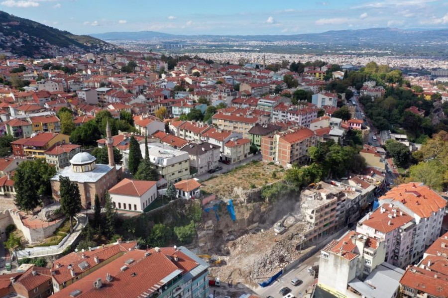 Kavaklı Mahallesi'nde geçtiğimiz yıl meydana gelen toprak kayması sonucu zarar gören riskli yapılar, kamulaştırma çalışmalarının ardından Osmangazi Belediyesi tarafından yıkılıyor. Üftade Tekkesi'nin çevresini güzelleştirecek yıkımların ardından uygulanacak yeni projeyle birlikte Bursa'nın tarihi yeniden ortaya çıkarken, şehre yeni bir sosyal donatı alanı kazandırılacak.