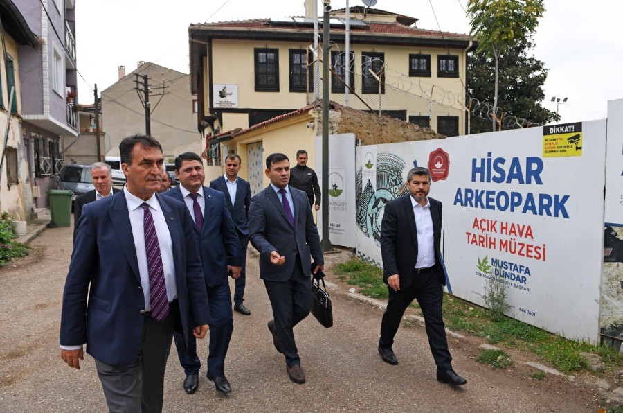 Başkan Dündar, Tacikistanlı heyete ilk önce Bursa'nın örnek projesi Osmangazi Meydanı'nı gezdirerek yakında açılışı yapılacak proje hakkında bilgi verdi. Daha sonra tüm dünyanın hayran kaldığı Panorama 1326 Bursa Fetih Müzesi'ni gezen heyet, sanal olarak gördükleri Eski Bursa'yı Hisar'da canlı olarak yaşadı. Başkan Dündar, misafirlerine Yaşayan Tarih Hisar İçi Projesi çerçevesinde Arkeopark, Filiboz Mescidi ve Oruçbey Caddesi'ni gezdirerek Bursa'nın tarihi hakkında bilgiler verdi. Üftade Türbesi çevre düzenleme çalışmalarını da yakından inceleyen Tacik heyet, Tarihi Çarşı ve Hanlar Bölgesi'ni de ziyaret etme fırsatı buldu.