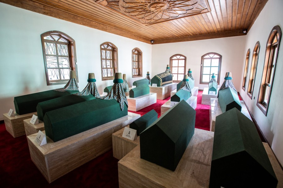 Daha sonra Bakan Ersoy tarafından Mevlevi geleneği olan çerağ uyandırma ritüeli olarak kandil yakıldı. Kültür Bakanlığı Konya Türk Tasavvuf Müziği ve Bursa Mevlevihanesi Postnişini Fahri Özçakıl, çerağ uyandırma gülbankı okudu. Okunan duaların ardından Prof. Dr. Mustafa Kara ve Sayfiyüddin Erhan tarafından hazırlanan ebcetli kitabe protokol tarafından duvara asıldı. Daha sonra Bakan Ersoy ve protokol tarafından mevlevihanenin ve müzenin açılış kurdelesi kesildi.