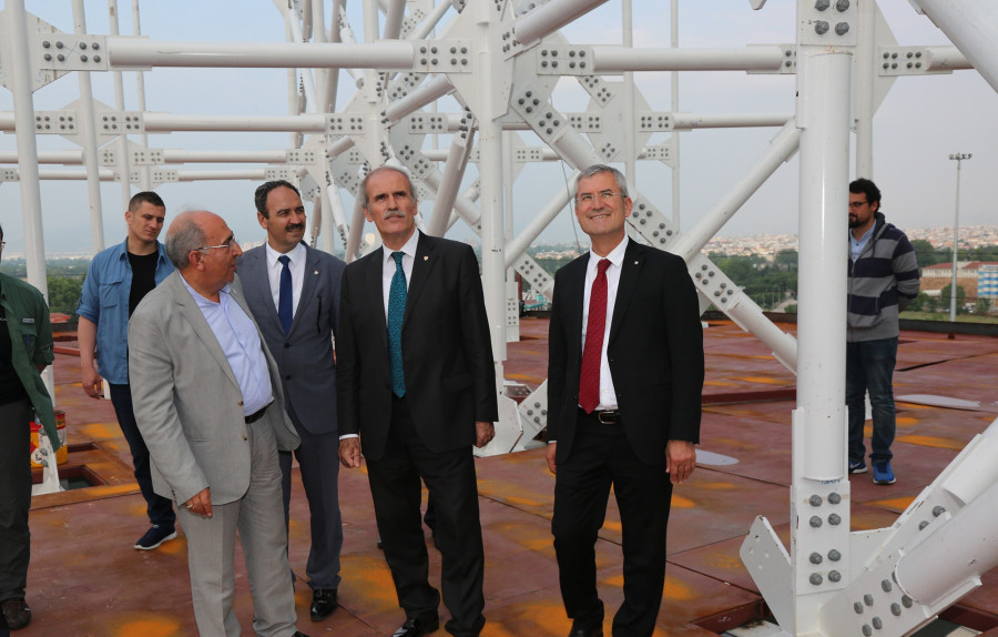 Büyükşehir Belediye Başkanı Recep Altepe, stadyumun kafa bölümünde devam eden çalışmaları yerinde inceledi. Kamuoyunda en fazla gündemde olan timsah kafasında da artık sona gelindiğini ifade eden Başkan Altepe, "Mühendislik açısından çok zor bir konstrüksiyon. İmalatlar büyük ölçüde tamamlandı. Son hazırlıklar yapılıyor. Önümüzdeki günlerde kafa yeşil örtü ile kaplanmaya başlayacak ve Ramazan Bayramı'ndan sonda da bu işlemin tamamlanmasını bekliyoruz. Bu kafa bölümünde ayrıca 1000'er metrekarelik alanlardan oluşan 2 kat ve bir de zemin ortaya çıktı. Bu bölümler değişik amaçlar için kullanılabilir. Düğün salonu, restoran ve kafeterya olabilir. Panoramik manzarası ile Bursa'ya değer katacak stadyum, kafa bölümünün bitmesiyle de dünyanın marka statları listesindeki yerini koruyacak. Düğün salonu ve kafe olarak kullanılabilecek alanlarla da Bursaspor'a gelir sağlanmış" dedi.