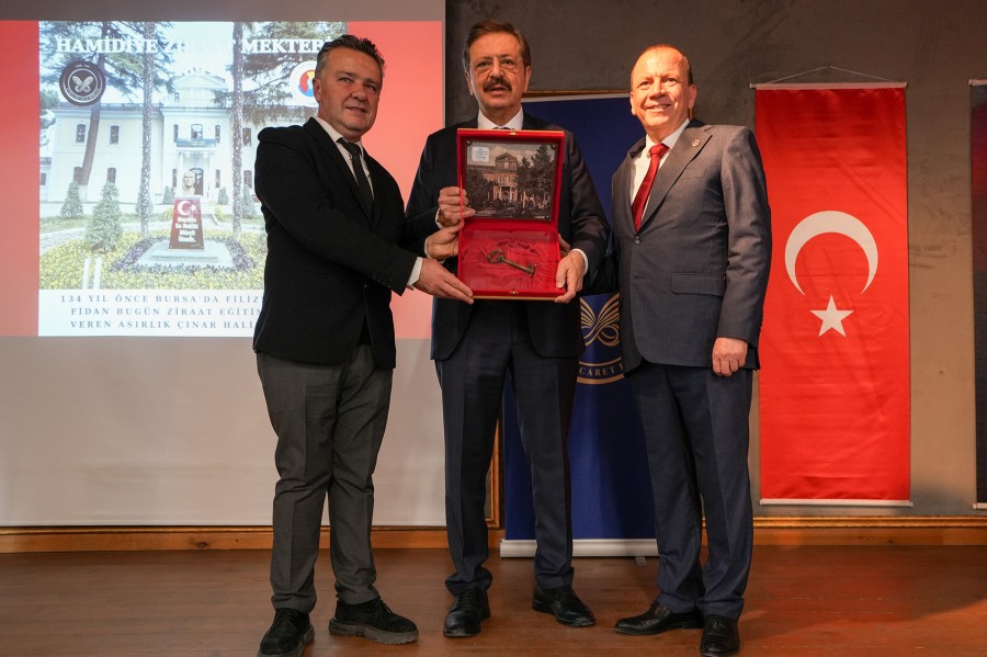 Bursa Ticaret Borsası'nın Türk tarımı ve eğitimi için üstlendiği öncü rolü vurgulayan TOBB Başkanı Hisarcıklıoğlu, 134 borsa içinde tarım meslek lisesine sahip çıkan ilk ve tek borsa olan Bursa Ticaret Borsası'nın, bu alanda örnek bir başarı hikayesi yazdığını belirtti. Hisarcıklıoğlu, "Bursa Ticaret Borsası sadece Bursa'nın değil, ülkemizin tarım ve hayvancılık sektörünün gelişmesine öncülük etmiş, tarım ve hayvancılığın modern, verimli ve sürdürülebilir bir yapıya kavuşmasına büyük katkı sağlamıştır. Bu başarı, 100 yılı aşkın köklü tarihinin bir yansımasıdır" ifadelerini kullandı.