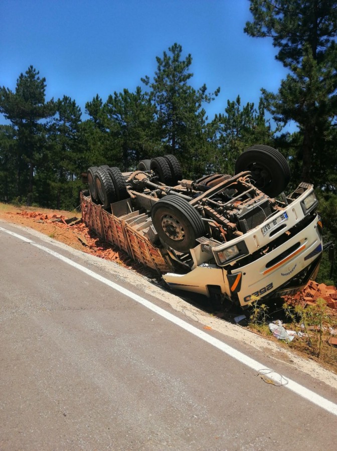 Olay dün 12.45 sıralarında Bursa'nın Büyükorhan ilçesine bağlı Aktaş Mahallesi'nde meydana geldi. Edinilen bilgiye göre, 16 JB 037 plakalı kamyon ilçe merkezine tuğla nakliyesi yaptığı esnada rampa aşağı inerken henüz belirlenemeyen bir nedenle sürücüsü direksiyon hakimiyetini kaybetti. Yüklü olması sebebiyle manevra kabiliyeti olmayan kamyon takla atarak yol kenarına düştü. Kazayı gören vatandaşlar itfaiye ve sağlık ekiplerine haber verdi. Olay yerine gelen 112 ekipleri araç sürücüsü ve yanındaki 3 kişiyi olay yerinde müdahalesinin ardından Büyükorhan Devlet Hastanesine kaldırdı. Kasada bulunan tuğlalar yola savrulurken, ekipler yolu kısa süreliğine araç trafiğine kapattı. Kazada yaralanan şahıslardan birinin durumunun ağır olduğu öğrenilirken, polis ekipleri olayla ilgili soruşturma başlattı.