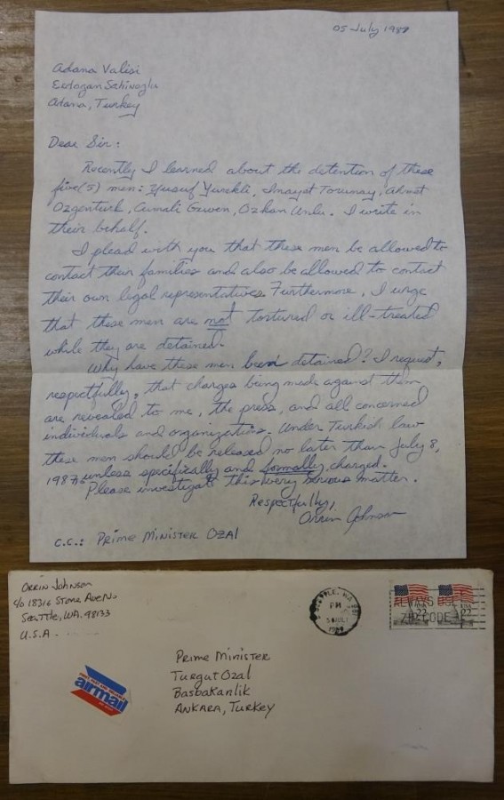 Ergül, mektubun 1987 yılında Orrion Johnson isimli bir kişinin Amerika Birleşik Devletleri'nin Washington eyaleti Seattle şehrinden dönemin Başbakanı Turgut Özal'a gönderildiğini fark etti.