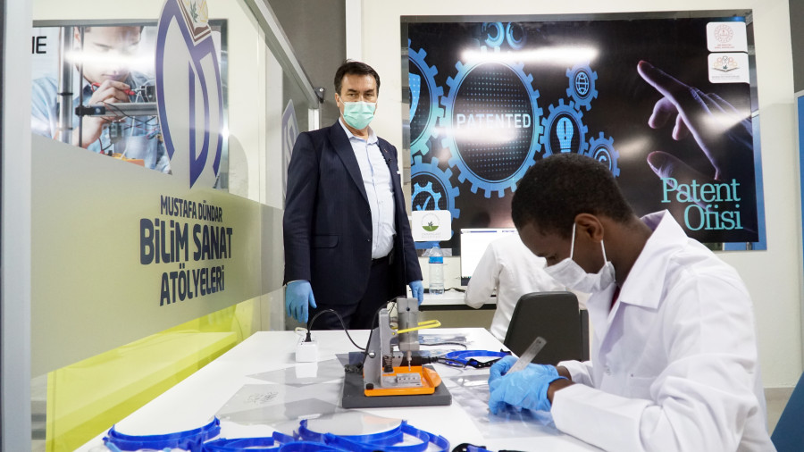 1 milyon nüfuslu Osmangazi İlçesi'ne en büyük eğitim yatırımlarından Uluslararası Murad Hüdavendigar Anadolu İmam Hatip Lisesi'ni kazandıran Osmangazi Belediye Başkanı Mustafa Dündar, öğrencileri ziyaret ederek hem moral verdi hem de teşekkür etti. Öğrencilerin sabah uzaktan eğitimle derslerini yaptıklarını belirten Başkan Mustafa Dündar, "Öğleden sonra da Teknoloji Üretim Merkezi'nde tam gün Sağlık İl Müdürlüğü'müzün talebi üzerine siperlikli maske, maske aparatı ve solunum yolunda kullanılan aparat üretiyorlar" dedi.