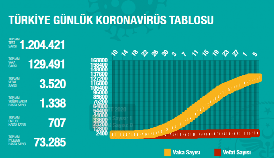 Sağlık Bakanlığı Türkiye'deki koronavirüs vakalarına ilişkin son durumu paylaştı. Toplam can kaybı 3 bin 520 oldu.