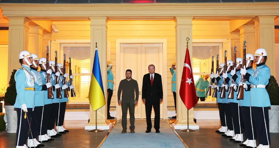 Cumhurbaşkanı Erdoğan ile Ukrayna Devlet Başkanı Zelenski'nin görüşmesi Vahdettin Köşkü'nde başladı.