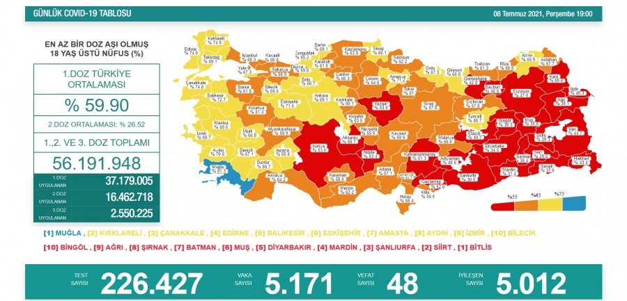 Tabloya göre Bursa'da aşılanma oranı yüzde 61,8'e yükseldi.