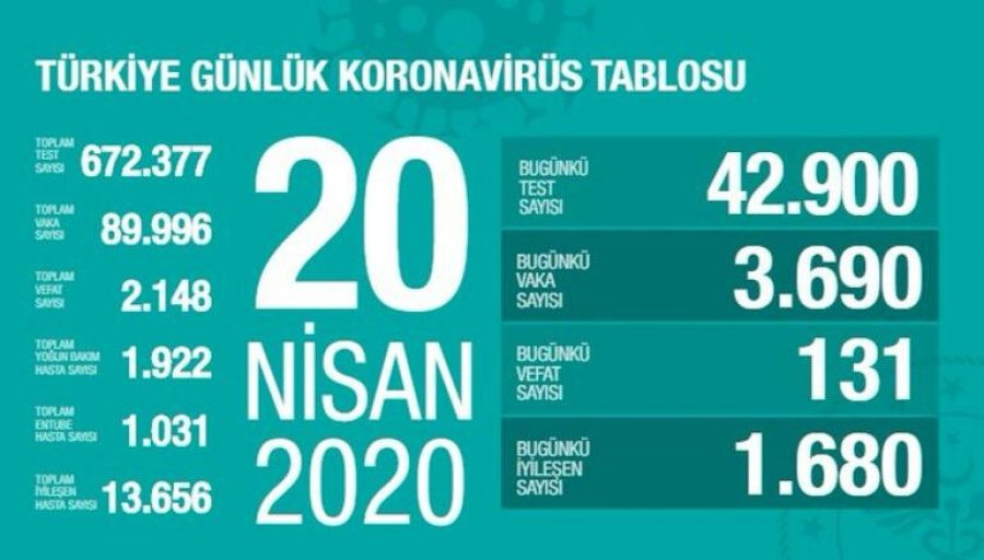 Sağlık Bakanlığı, güncel corona virüs tablosunu açıkladı. Türkiye'de son 24 saatte 131 kişi hayatını kaybetti. Toplam iyileşen hasta sayısı ise 13.656'ya yükseldi.