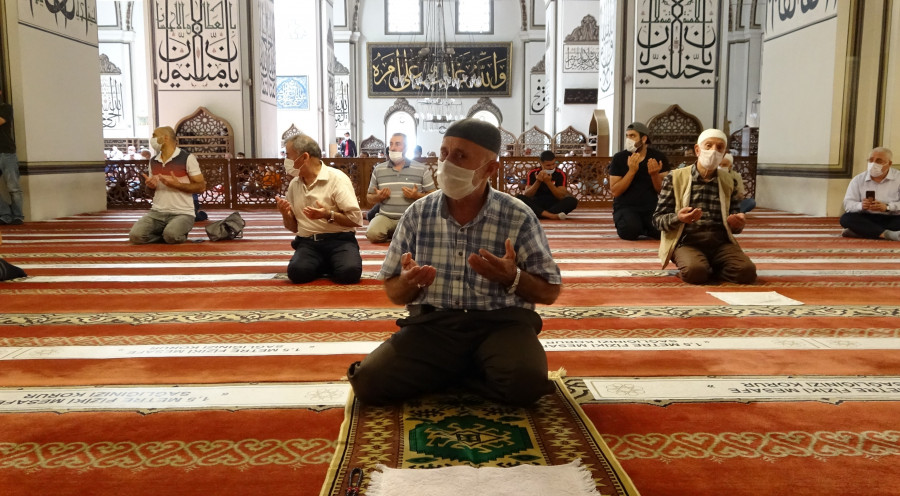 Camide mevlit okunduğu esnada sosyal mesafe kurallarına büyük önem gösterildi.