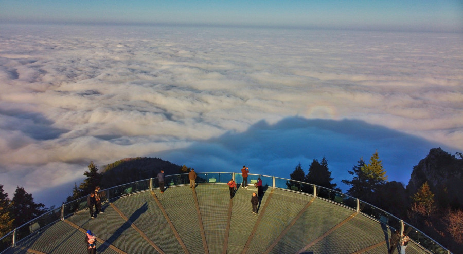Bulutların üzerinde şehri izleyen vatandaşlar hatıra fotoğrafı çektirmeyi ihmal etmiyor.