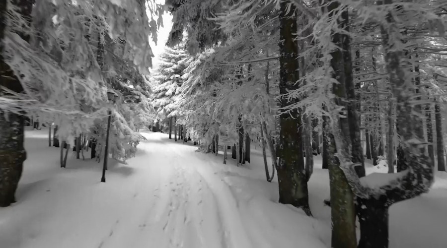 Doğa Koruma ve Milli Parklar 2. Bölge Müdürlüğü tarafından dron ile kayda alınan görüntüler, Uludağ'ın beyaza bürünmüş ağaçlar arasındaki güzelliklerini gözler önüne serdi.