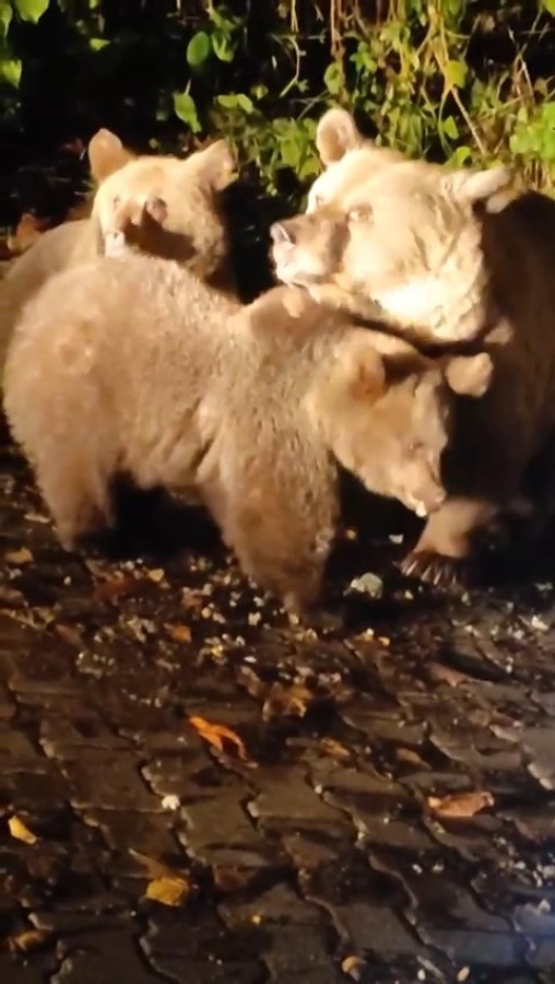 Kış ayından bu yana bulunduğu Z yoluna yakın yerlerde dolaşan yavru ayılar, çöp konteynırlarında yemek ararken, yavruların büyüdüğünü gören vatandaşlar ayılara araçlarıyla yakınlaşıp izledi.
