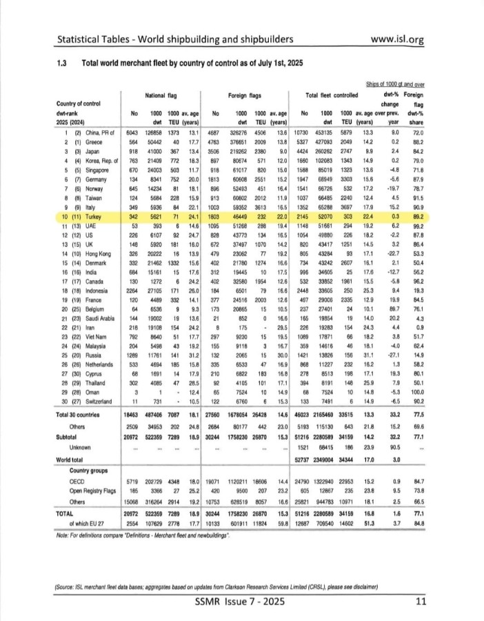 "Bin groston ve üzeri Türk sahipli deniz ticaret filomuz, 53,1 milyon dedveyt kapasitesiyle dünya sıralamasında 11. sıradan 10. sıraya yükseldi. Türkiye artık lider denizci ülkeler arasında yer alıyor."