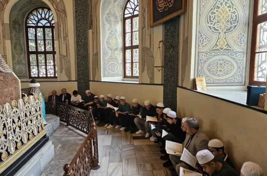 Vakıflar Bursa Bölge Müdürlüğü, Vakıf Haftası dolayısıyla Osman Gazi ve Orhan Gazi Türbelerinde Cuma namazı öncesinde İsmail Hakkı Bursevi Kur'an Kursu öğrencileri ile hatim indirip duasını yaptı.