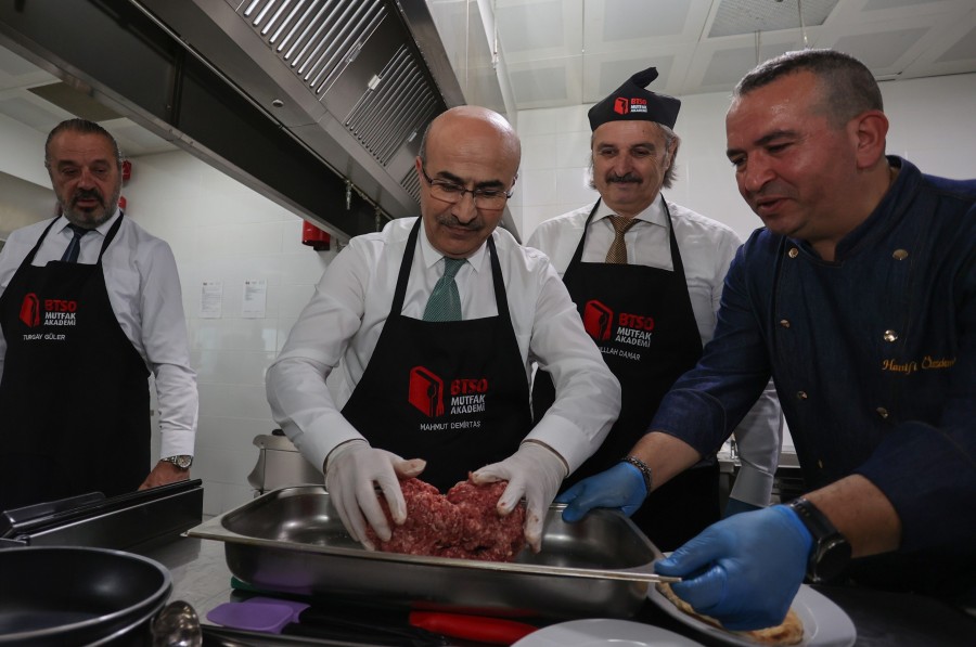 BTSO Mutfak Akademi'de önlük giyip tezgah başına geçen Vali Demirtaş, "Pideli köfte, sadece bir yemek değil, aynı zamanda Bursa'nın zengin kültürel mirasının bir parçası. Bu lezzeti sizlerle paylaşmaktan ve Bursa'mızın gastronomi kültürünü yaşatmaktan gurur duyuyoruz" dedi.