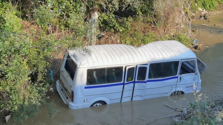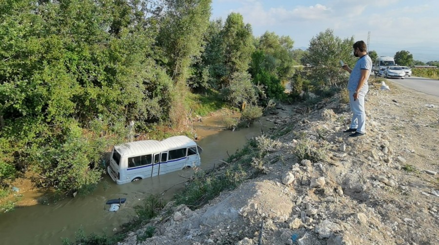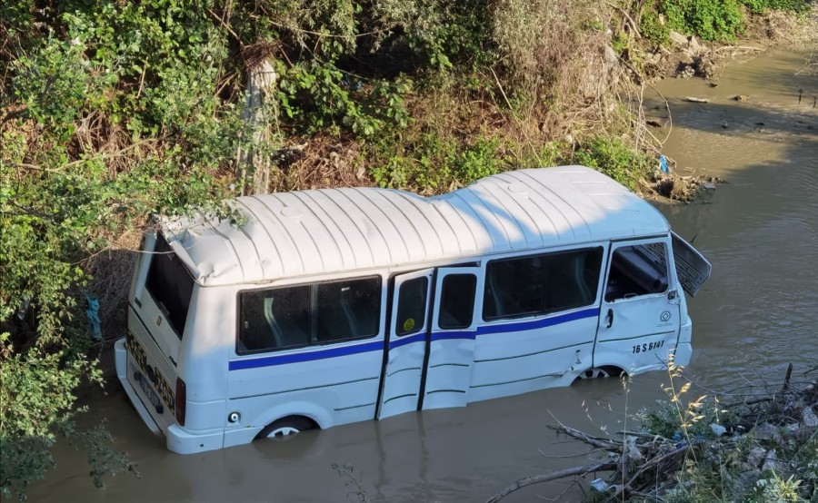 Bursa'nın İnegöl ilçesinde meydana gelen kazada kontrolden çıkan servis midibüsü Bedre Deresi'ne uçtu, 1 kişi yaralandı.