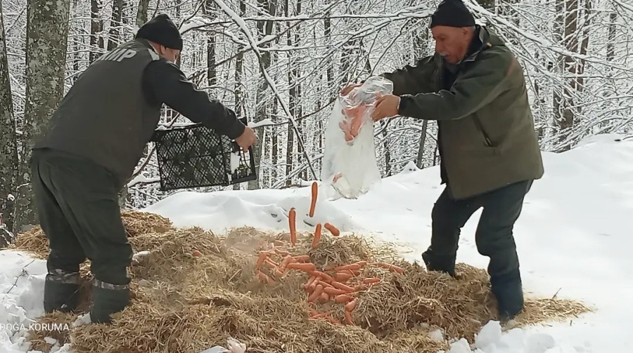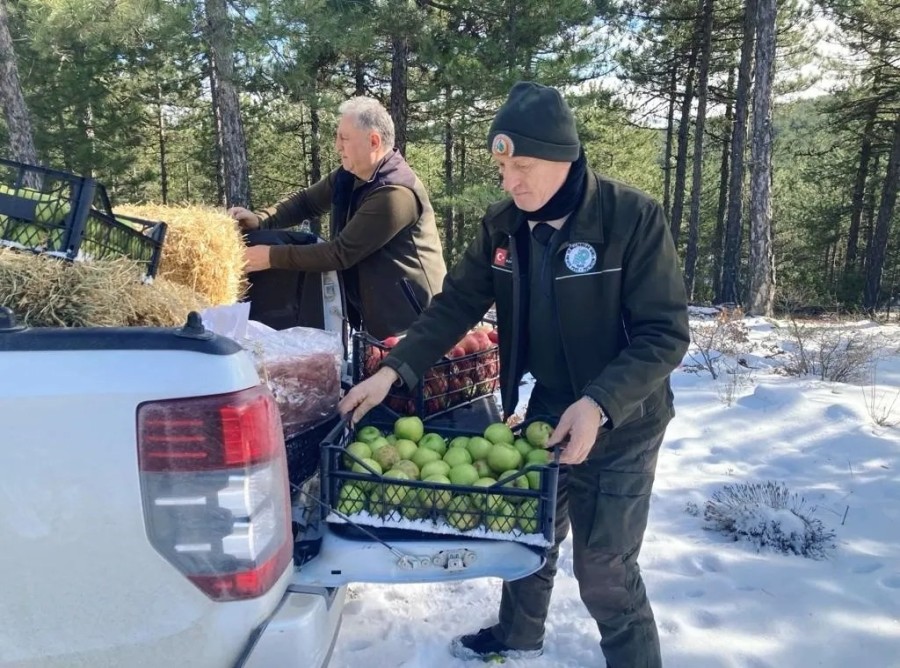 Tarım Orman Bakanlığı Doğa Koruma ve Milli Parklar Genel Müdürlüğü 2.Bölge Müdürlüğüne bağlı ekipler, yoğun kar yağışı ve zor kış şartlarında yem bulmakta güçlük çeken yaban hayvanları için doğaya yiyecek bıraktı.