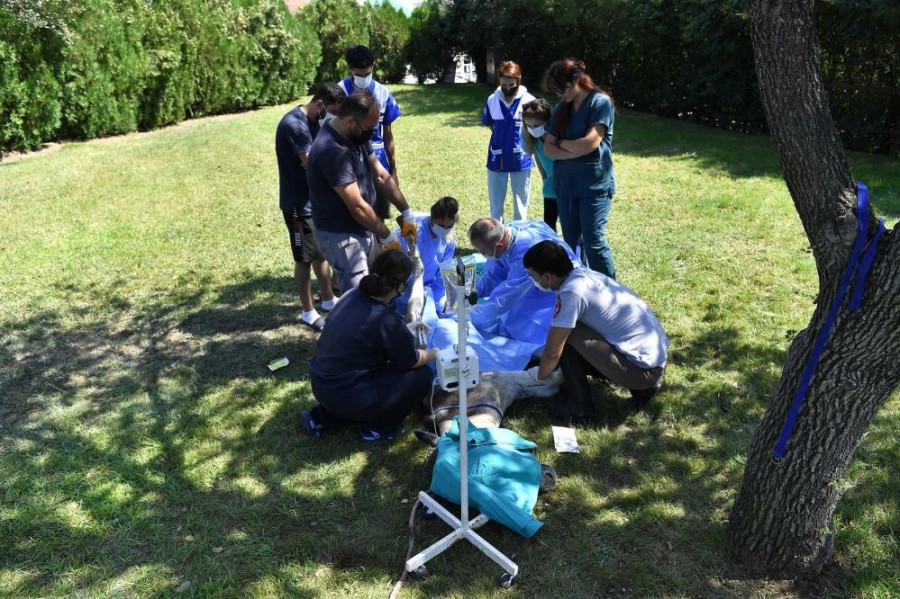 Yapılan muayene sonucunda eşeğin yanan bölgelerinde enfekte yarası oluştuğu ve aynı zamanda testislerinde de yangı olduğu tespit edildi. Eşeğin acilen operasyona alınması gerektiğine karar veren Çevre Koruma ve Kontrol Müdürlüğü'nde görevli veteriner hekimler, yaralı eşeğe operasyon yaptı. Yaklaşık bir saat süren operasyon sonucunda eşeğin yanık bölgelerindeki enfeksiyon temizlenirken, testislerine de gerekli müdahale yapıldı. Eşek, operasyonlar sonrası kısa sürede ayağa kalkarak sağlığına kavuştu.