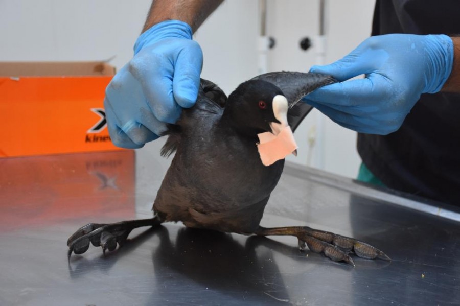 Sağ bacağında çok parçalı kırık olduğu tespit edilen kuş, Gemlik Belediyesi veteriner hekimleri tarafından tedavi altına alındı. Bacağına atel takılarak kemiklerin kaynaması sağlanacak olan kuş, iyileştikten sonra doğal ortamına bırakılacak.