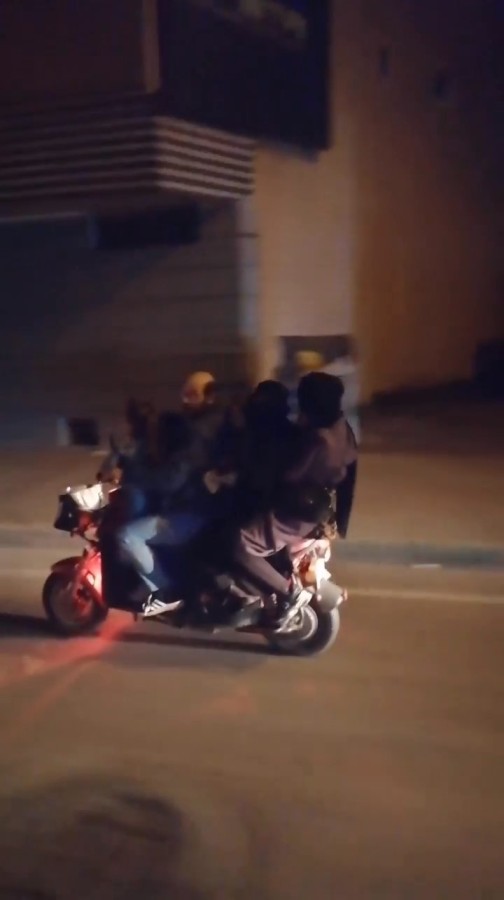 Motosiklete bir değil, iki değil tam 6 kişinin bindiğini görenler, o anları anbean cep telefonu kameraları ile kaydetti.