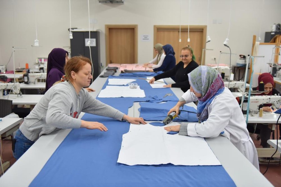 Yıldırım Belediyesi Sosyal İnovasyon ve Girişimcilik Merkezi kursiyerleri 'Bir El De Sen Uzat' projesi çerçevesinde bin çocuk ve genç için eşofman üretiyor.