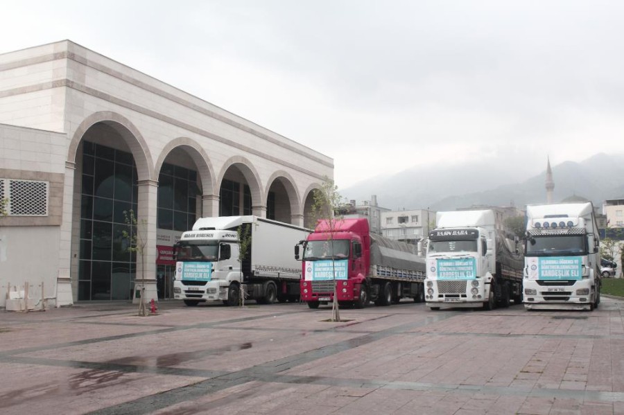 Naim Süleymanoğlu Spor Kompleksi'nde toplanan tırların 7'den 70'e herkesin yardımı ile toplanan yardımların bölgeye ulaştırılacağını belirten Yıldırım Belediye Başkanı Oktay Yılmaz, "6 Şubat'ta asrın felaketini hepimiz yüreğimizde hissettik. Depremin olduğu ilk andan itibaren Yıldırım olarak el ele gönül gönülle depremzede kardeşlerimizin yanında olduk. Yaptığımızı sosyal destek çalışmaları konteynır kent çalışmaları enkaz kaldırma çalışmalarında olduğu gibi ramazan ayı içerisinde de 7'den 70'e zenginiyle fakiriyle, öğrencisiyle iş adamıyla yaraları birlikte sarmaya devam ediyoruz. Öğrencilerimiz buradan giden sosyal destek çalışmalarında kolilerin istiflenmesi gelen yardımların derlenip toparlanması ve tıra yüklenmesi noktasında çok aktif bir görev almışlardı" dedi