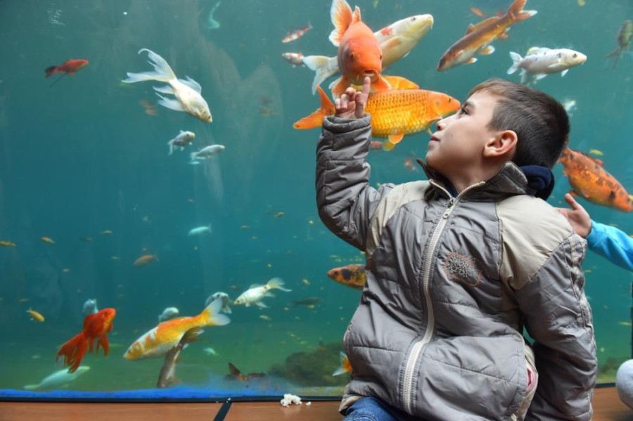 Yarıyıl tatili boyunca karnelerini getirip tüneli ücretsiz olarak ziyaret etme fırsatı bulan öğrenciler, kentin ilk ve tek tünel akvaryumunda su canlılarını yakından tanıma imkânı buluyor. Bin metrekare alan üzerine kurulu gölet akvaryumda 5 bin yetişkin 20 bin yavru Koi Balığı bulunuyor.