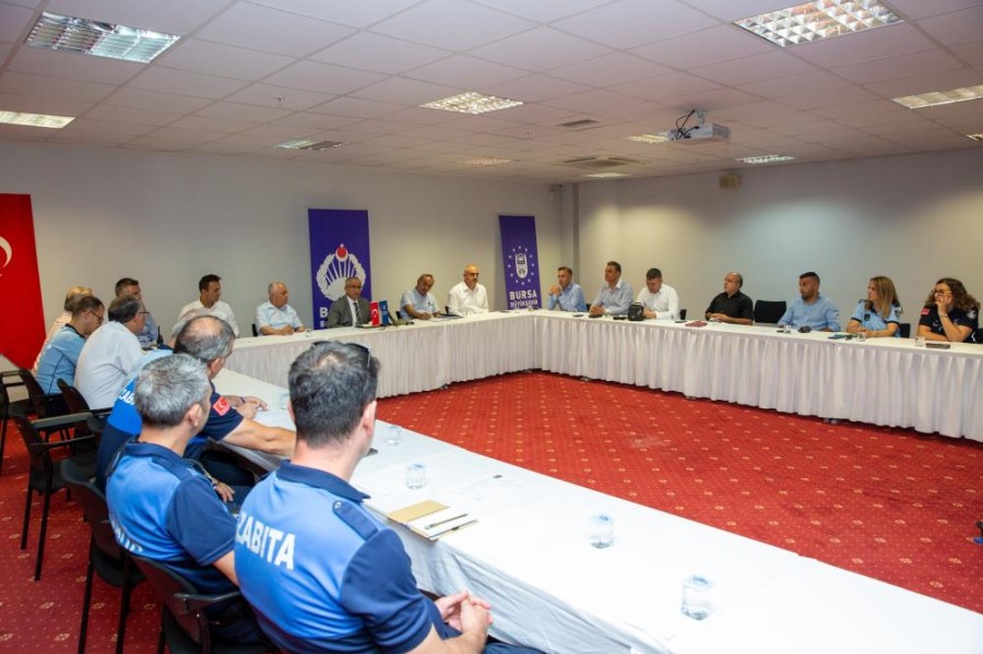 Bursa'da halkın esenlik, sağlık ve huzurunun sağlanması için 17 ilçede yoğun bir mesai harcayan Zabıta Müdürleri, Büyükşehir Belediyesi Zabıta Dairesi Başkanlığı'nın ev sahipliğine yapılan 'Aylık Koordinasyon ve Değerlendirme Toplantısı' bir araya geldi.