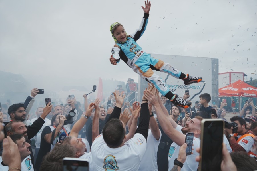 MOTUL 2024 Türkiye Karting Şampiyonası'nın 5. ayak yarışları başarıyla tamamlandı. Kocaeli'nin Körfez ilçesi TOSFED yarış pistinde düzenlenen yarışlarda, Borusan Otomotiv Motorsport (BOM) Karting Takımı adına katılan 5 yaşındaki oğlu Zayn Sofuoğlu, yaşadığı talihsiz kaza neticesinde yarışı ikinci sırada tamamladı. 5 ayrı kategoride 60 sporcu mücadele ettiği yarışların genel klasmanda aldığı dereceler neticesinde minik Zayn, kendi kategorisindeki yarışların 5. Ayağında TOSFED Micro Destek Kupası'nın sahibi oldu. Bu çerçevede katıldığı ilk motosiklet yarışında Türkiye şampiyonluğunu ilan eden minik Zayn, aldığı bu galibiyetle 4 tekerde de şampiyonluk ilan etti. Finiş çizgisine gelmesinin ardından Zayn Sofuoğlu'nu ilk kutlayan babası oldu. Büyük sevinç yaşayan yakınları ve takım arkadaşları, şampiyonluğu minik Zayn'ı havaya atıp, meşaleler yakarak kutladı.
