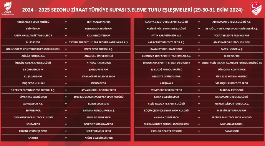Ziraat Türkiye Kupası 3. Eleme Turu eşleşmeleri şu şekilde: