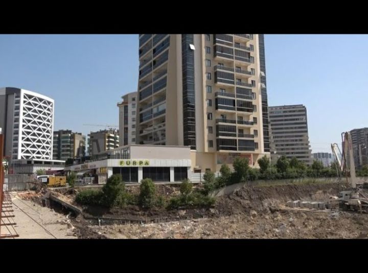 Bursa'da yeni yapılacak bina için temel atma esnasında yan tarafında bulunan başka bir siteye ait 16 katlı binanın bahçe duvarı çöktü. O anlar kameraya anbean yansıdı.
