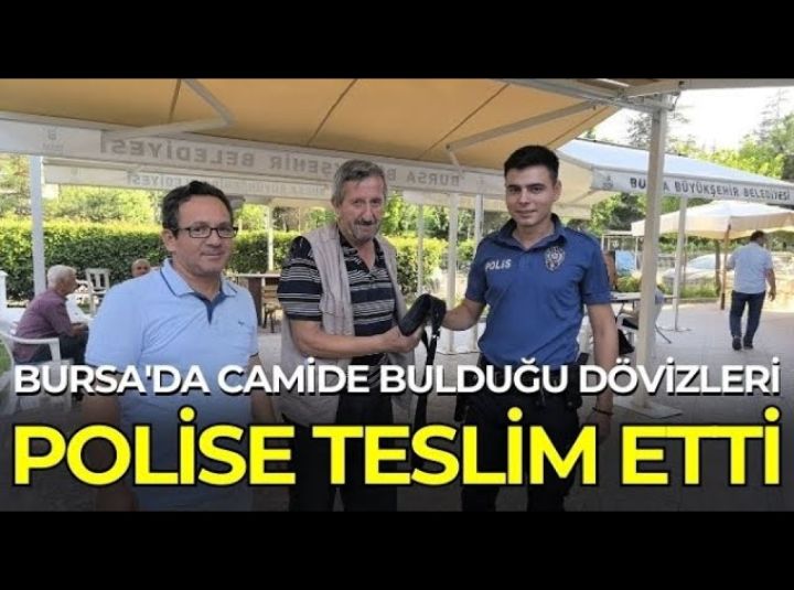 Bursa'nın İnegöl ilçesinde camide namaz kıldıktan sonra yerde döviz dolu çanta bulan vatandaş, çantayı sahibi bulunmak üzere polise teslim etti. Olay, İnegöl'ün Turgutalp Mahallesi Turgutalp Camii'nde meydana geldi. Mehmet Özhaşlama (65) namaz kılmak için camiye gitti. Namazını kıldıktan sonra camiden çıkarken yerde çanta buldu. Çantayı alan Özhaşlama, polise haber verdi. Polis ekipleri çanta içerisinde yaklaşık 40 bin TL değerinde döviz ve kimleri buldu. Ekipler, teslim aldıkları çantanın sahibini bulmak için çalışma başlattı. Olayı anlatan Mehmet Özhaşlama(65), "namaz kıldıktan sonra pencerenin yanında yerde çanta buldum. Caminin imamına teslim ettim" dedi.