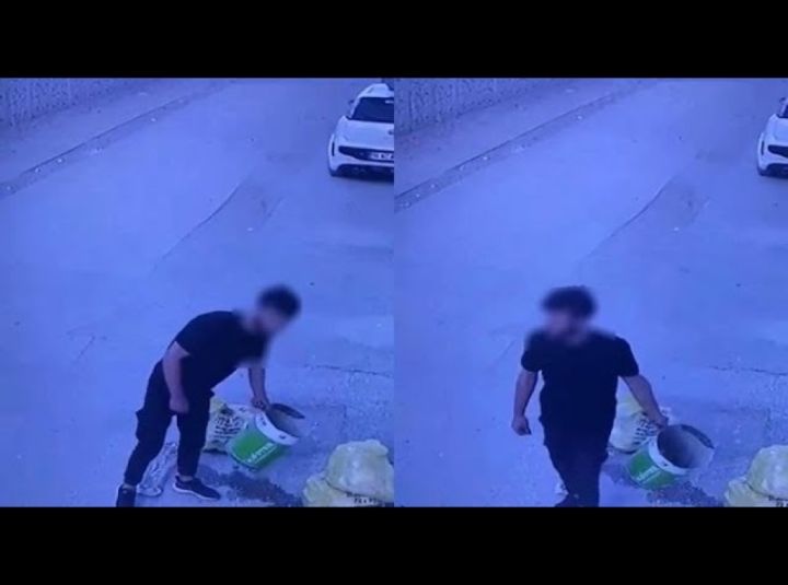 Bursa'da hırsızlık şüphelisi bir kişi yürüdüğü esnada yol kenarında duran çöp kovasına bir süre bakıp içini boşalttı. Ardından kovayı alan kişi kayıplara karışırken, o anlar güvenlik kamerasına yansıdı.