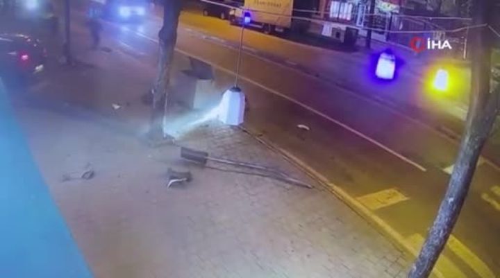 Bursa'da kavşaktan dönüş yapan otomobil, sürücüsünün panikleyip fren yerine gaza basmasıyla kontrolden çıktı. Hızlanan araç refüjü aşarak karşı yönden gelen motosiklete çarptı ve kaldırıma savruldu. Çarpmanın etkisiyle araçtan kopan parçalar yakındaki bir iş yerinin camını kırdı.İhbar üzerine olay yerine sağlık, polis ve itfaiye ekipleri sevk edildi. Kazada yaralanan otomobil ve motosiklet sürücüleri ambulanslarla hastaneye kaldırıldı.Kaza anı bir iş yerinin güvenlik kamerasına yansıdı. Görüntülerde otomobilin motosiklete çarptığı ve çevredeki vatandaşların yaralılara yardım etmek için koştuğu anlar yer aldı.Polis ekipleri kazayla ilgili inceleme başlattı.