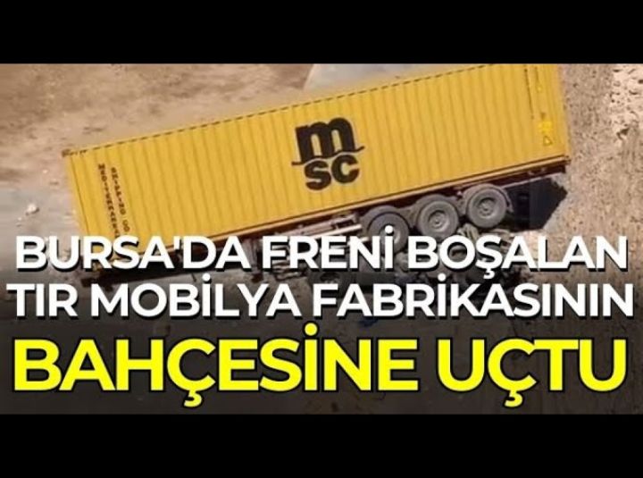 ursa'nın İnegöl ilçesinde freni boşalan tır, istinat duvarından mobilya fabrikasının bahçesine uçtu. Kaza, saat 13.00 sıralarında İnegöl Mobilya ve Ağaç İşleri İhtisas Organize Sanayi Bölgesi'nde (İMOSAB) meydana geldi. Park halindeyken freni boşalan 16 BLH 905 plakalı tır, istinat duvarından mobilya fabrikasının bahçesine uçtu. Dorsenin üzerine düştüğü tırın sürücü kabini hurdaya dönerken, kazada yaralanan olmadı.